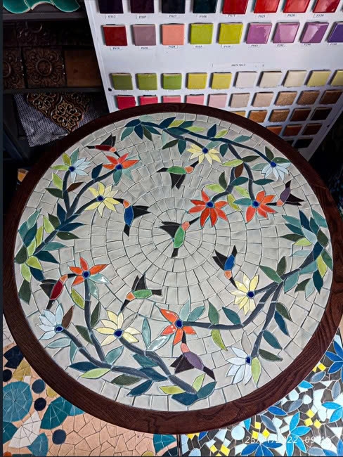 Mặt bàn: Gốm mosaic (gốm ghép mảnh)