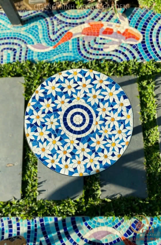 Mặt bàn: Gốm mosaic (gốm ghép mảnh)