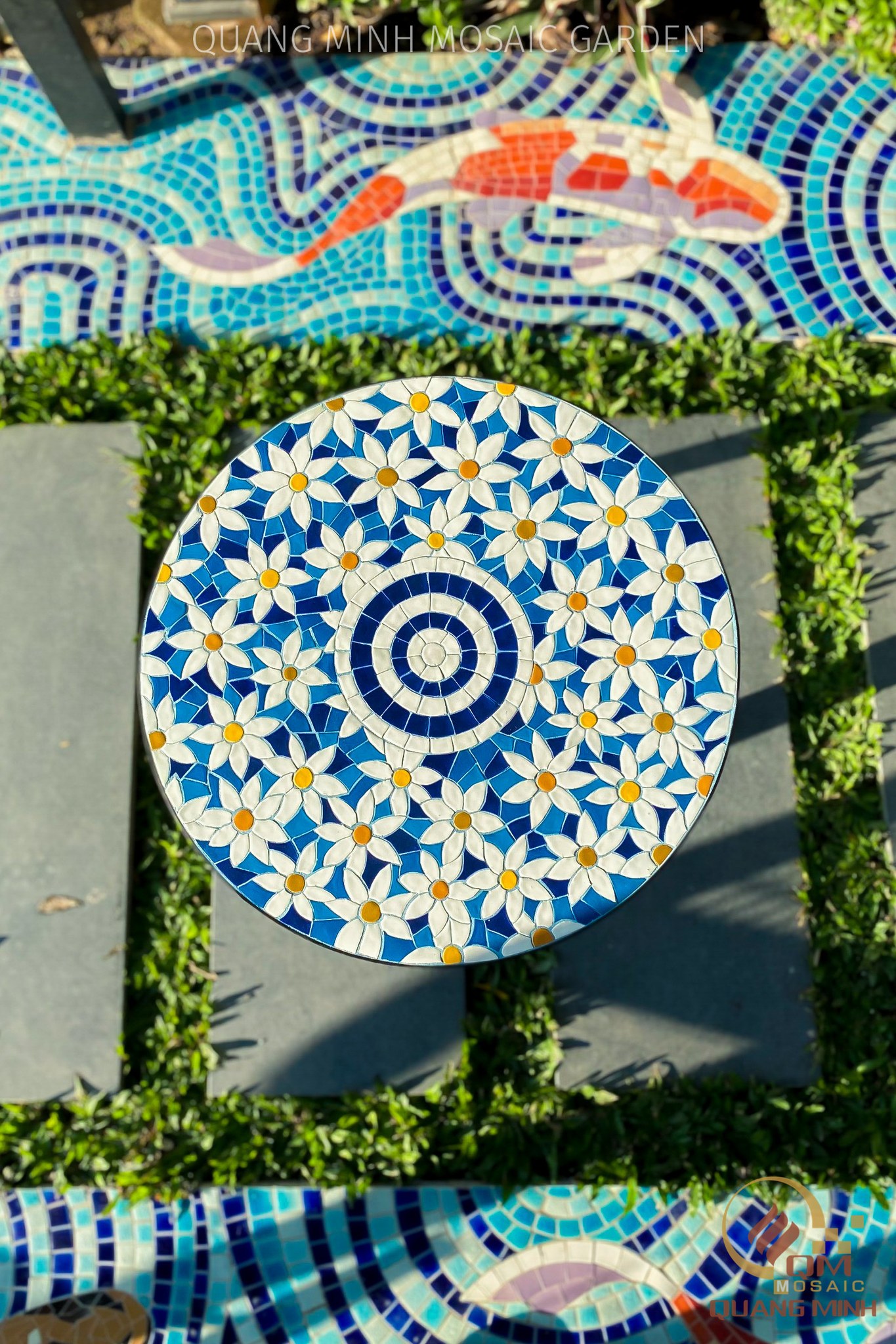 Mặt bàn: Gốm mosaic (gốm ghép mảnh)